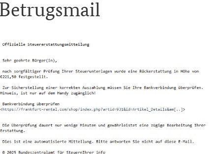 E-Mail 3: Steuererstattung und Aufforderung zur Überprüfung der Bankverbindung